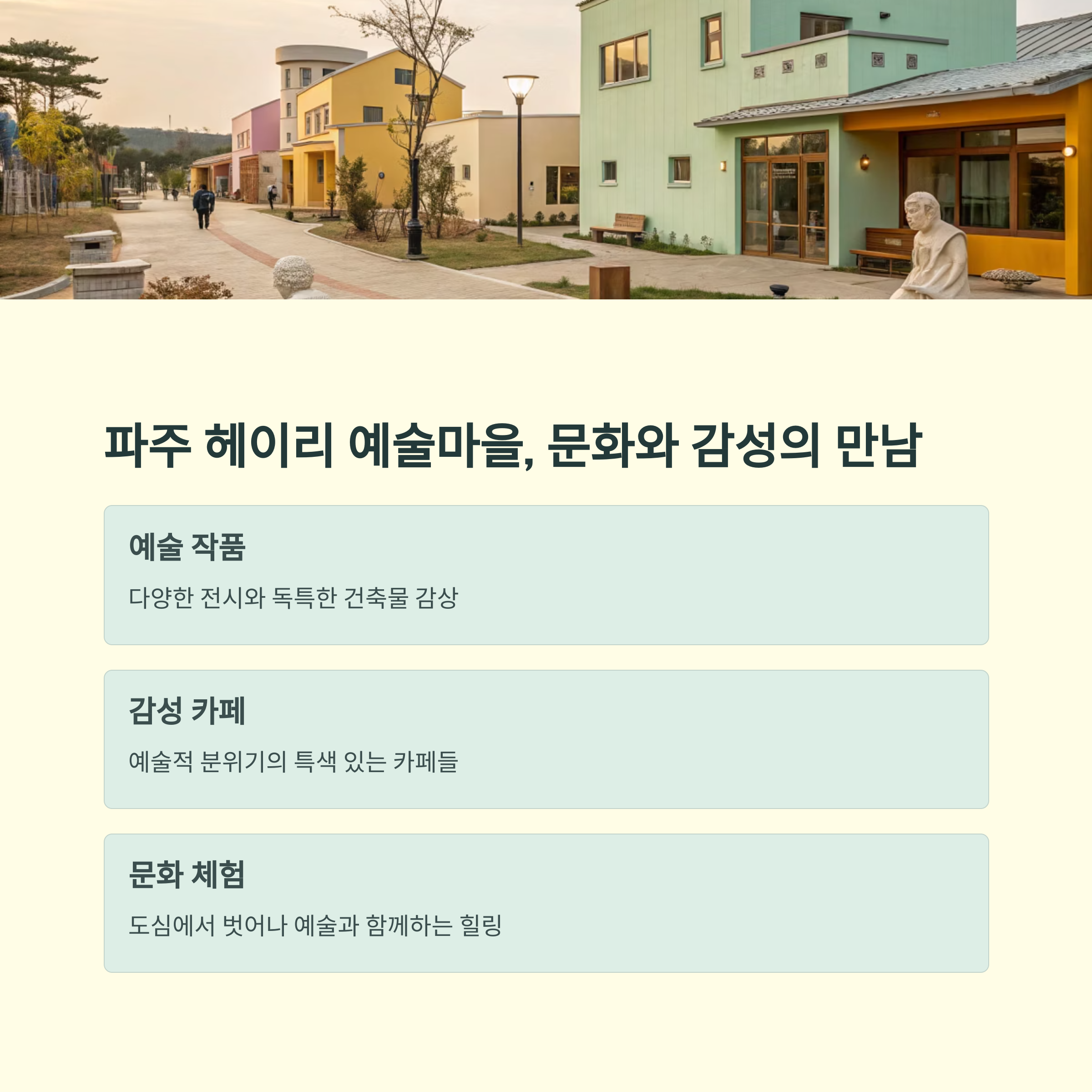 파주 헤이리 예술마을은 감성과 문화가 살아 있는 드라이브 명소입니다. 예술 작품과 전시, 독특한 건축물 사이를 거닐다 보면 도심에서의 스트레스를 잠시 잊게 됩니다. 이외에도 양평의 들꽃수목원, 하남 스타필드 주변도 쇼핑과 휴식을 동시에 즐길 수 있는 장소입니다. 드라이브 도중 들를 수 있는 카페와 맛집도 여행의 만족도를 높이는 요소입니다. 원하는 분위기에 따라 다양한 코스를 구성해보세요.