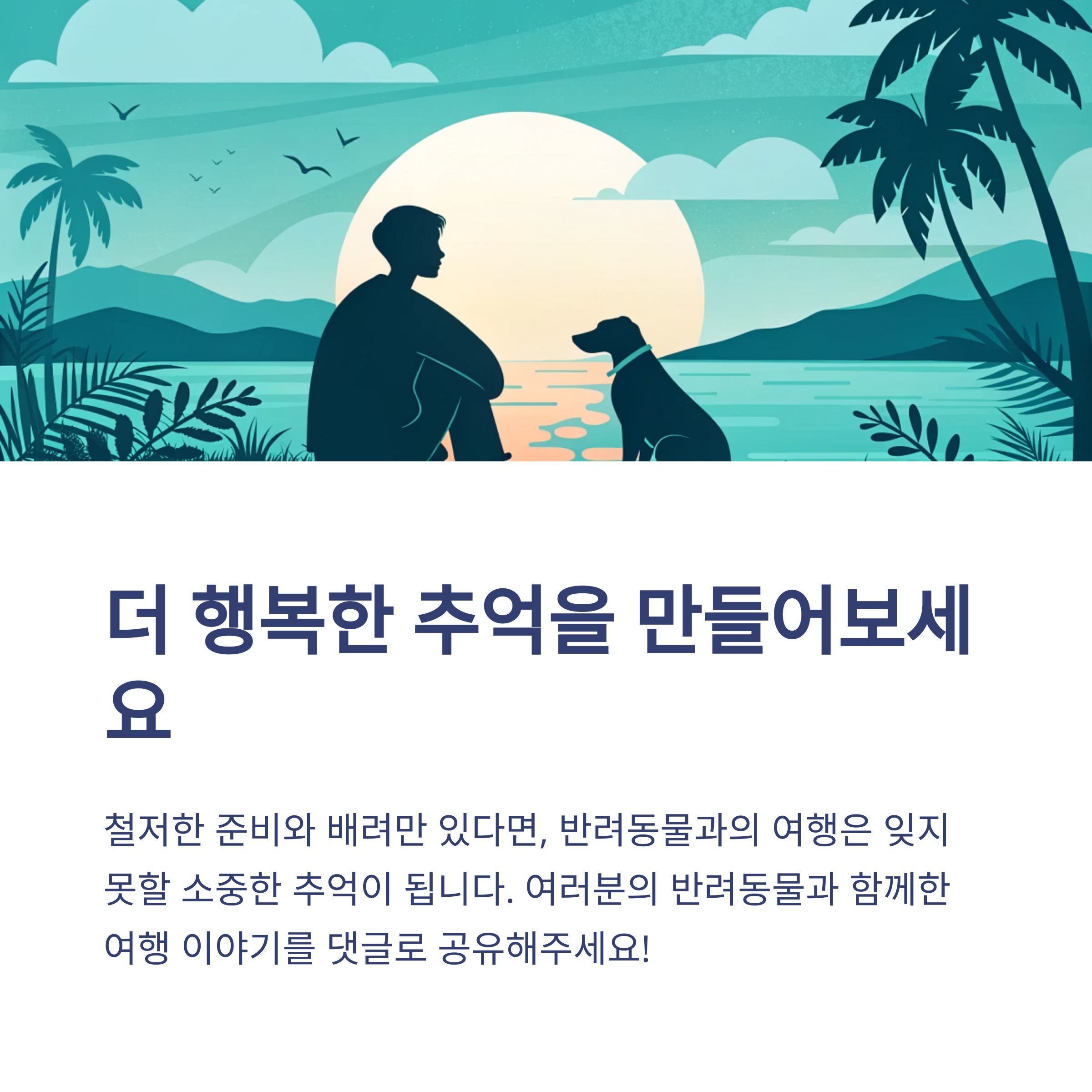 여러분은 반려동물과 함께한 여행에서 어떤 점이 가장 기억에 남으셨나요? 혹시 공유하고 싶은 팁이나 경험이 있으시다면 댓글로 자유롭게 남겨주세요! 다양한 이야기들이 함께하는 공간이 되었으면 합니다.