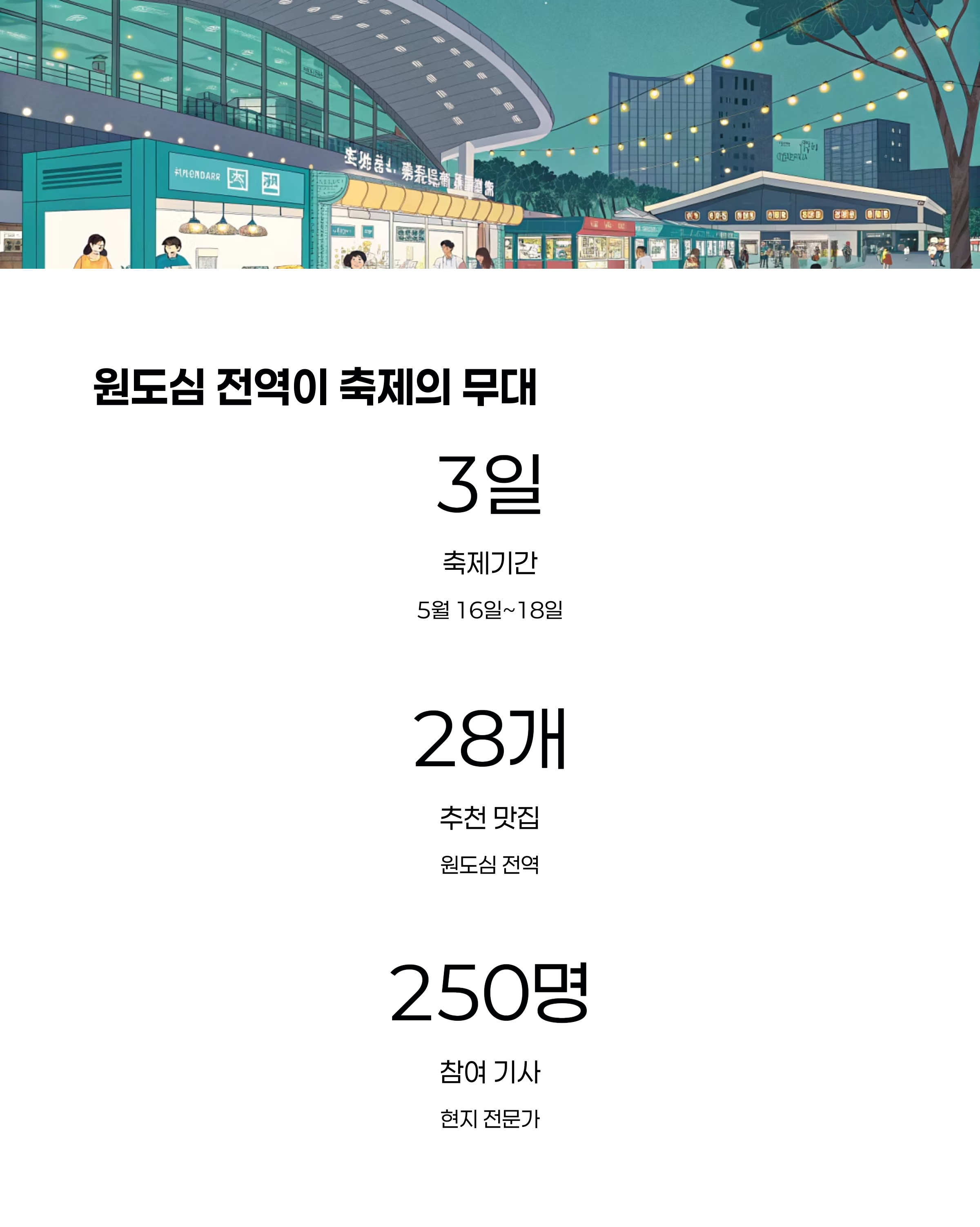 이처럼 축제는 하나의 도시탐방형 이야기로 짜여져, 누구나 자신의 미식 스토리를 만들 수 있도록 구성되어 있습니다.