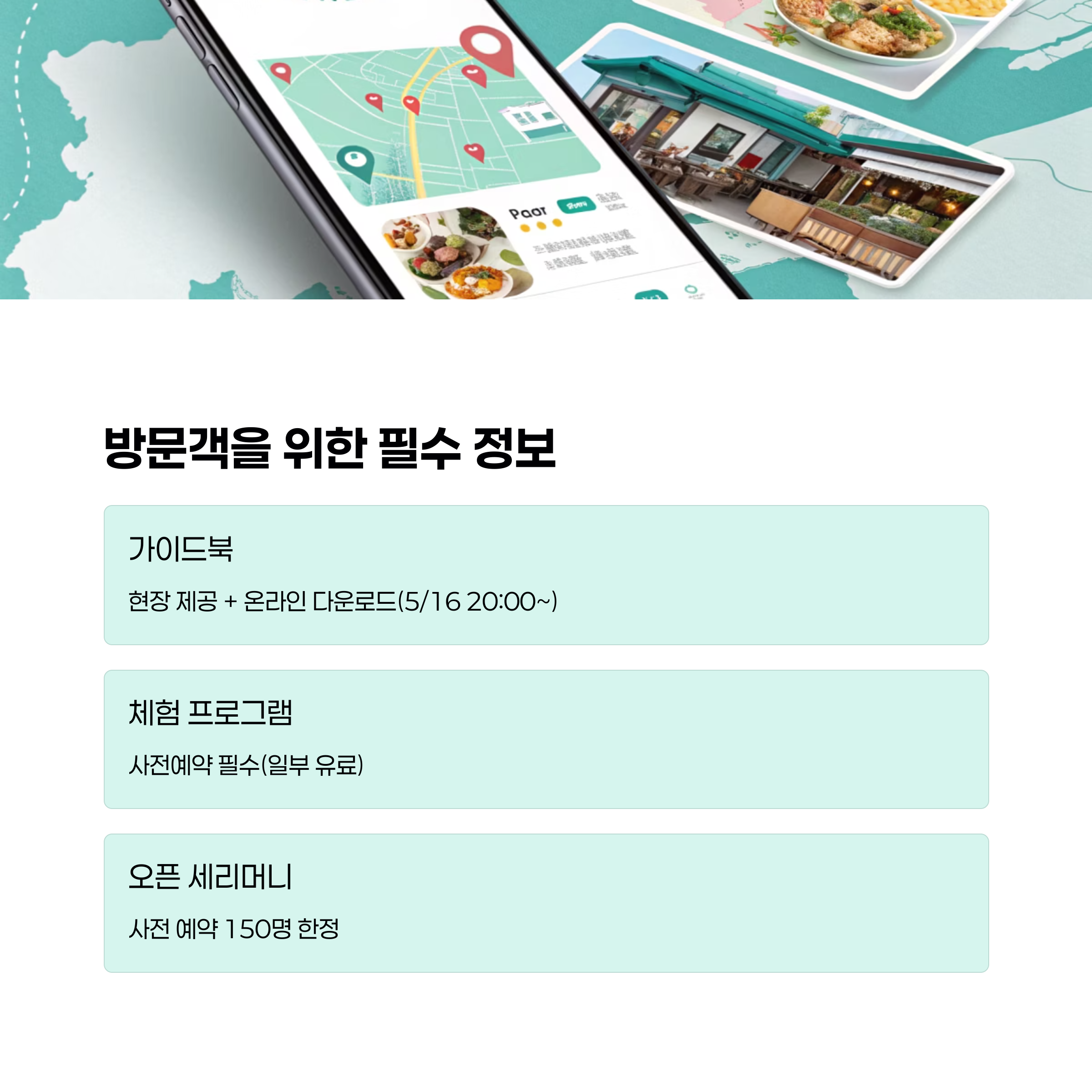 | 가이드북 배포 | 책자 현장 제공 + 온라인 다운로드 (5/16 20:00~) |
