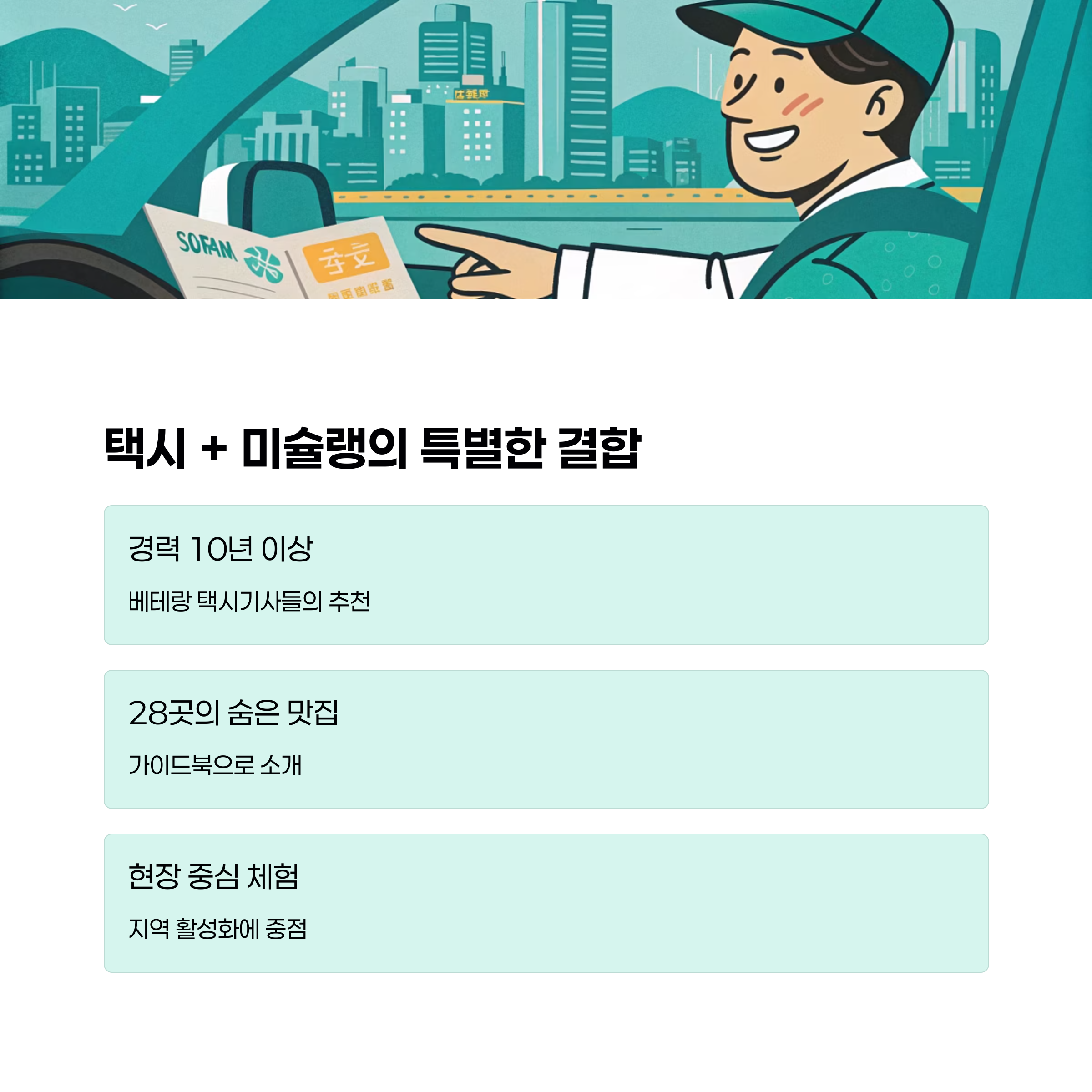‘택슐랭’은 이름부터 독특합니다. "택시"와 "미슐랭"의 합성어로, 10년 이상의 경력을 가진 베테랑 택시기사들이 직접 선정한 28곳의 숨은 맛집을 가이드북으로 소개하는 미식 축제입니다. 축제의 모든 프로그램은 현장 중심 체험과 지역 활성화에 중점을 두고 있으며, 단순한 식도락을 넘은 도심 탐방으로 이어집니다.