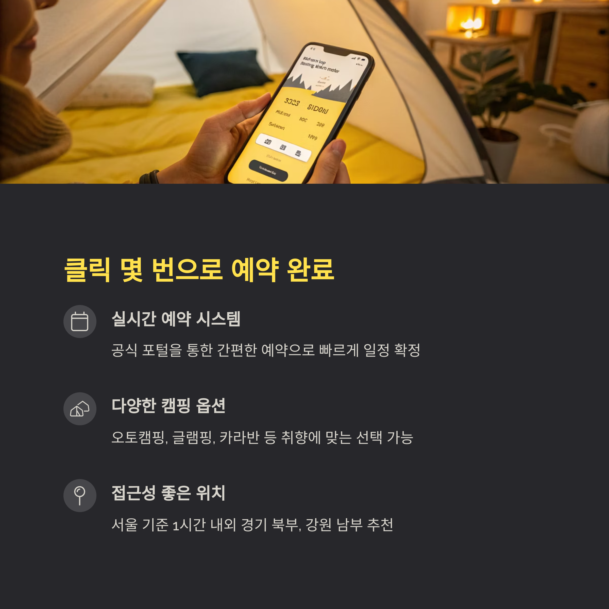 | 예약이 쉬운 캠핑장 | 클릭 몇 번으로 바로 예약 가능한 캠핑장 소개 |