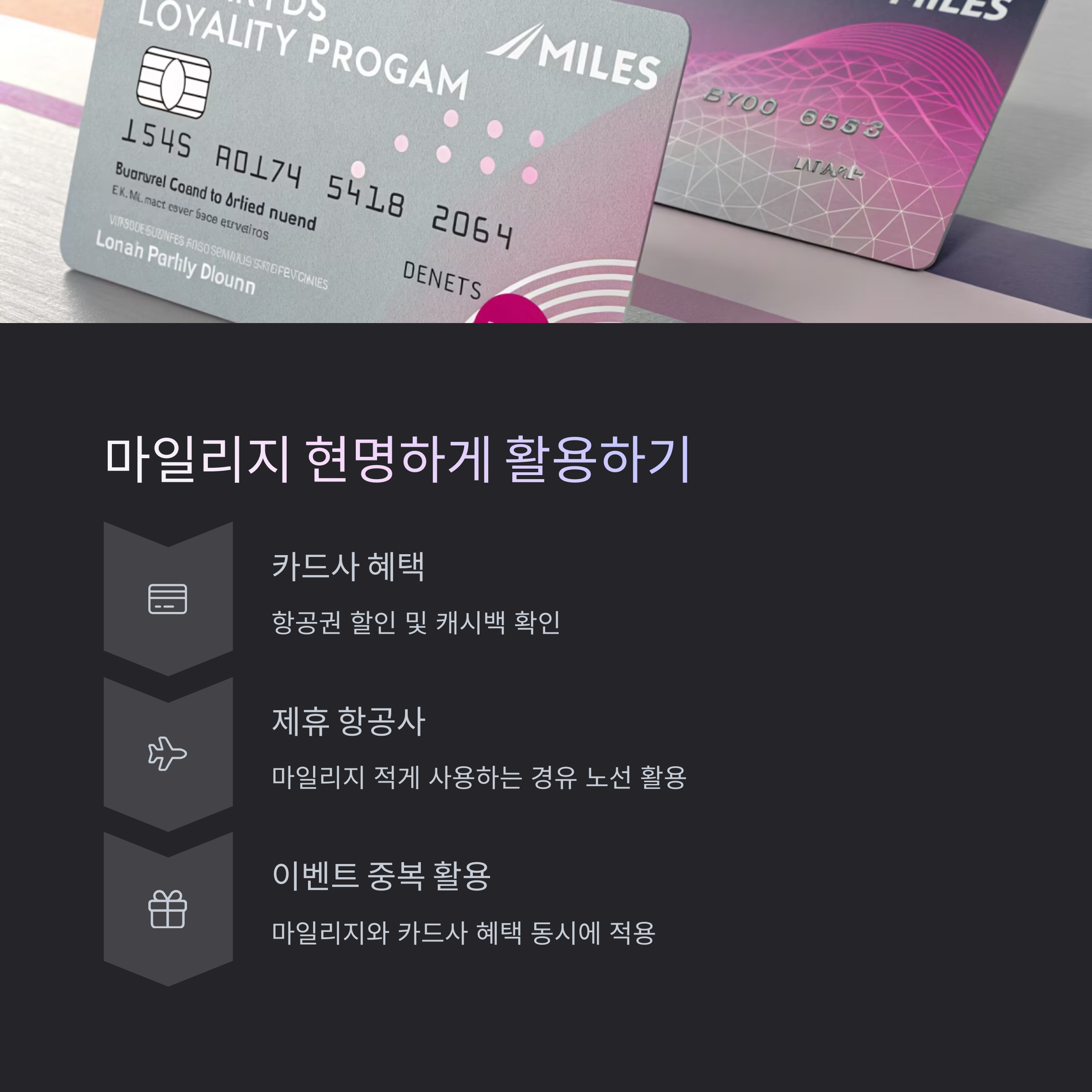 마지막으로 간과하기 쉬운 부분이 바로 항공사 마일리지 및 카드사 혜택입니다. 특정 카드사는 마일리지 적립뿐만 아니라 항공권 할인이나 캐시백 혜택을 제공하므로, 항공권 결제 전 카드사의 이벤트 페이지를 반드시 확인해야 합니다. 또한 항공사 직항보다는 제휴 항공사의 경유 노선을 활용하면 마일리지를 더 적게 사용하면서도 원하는 목적지에 도착할 수 있는 경우가 많습니다. 조금의 노력만 더해도 큰 차이를 만들 수 있는 분야가 바로 항공권입니다.