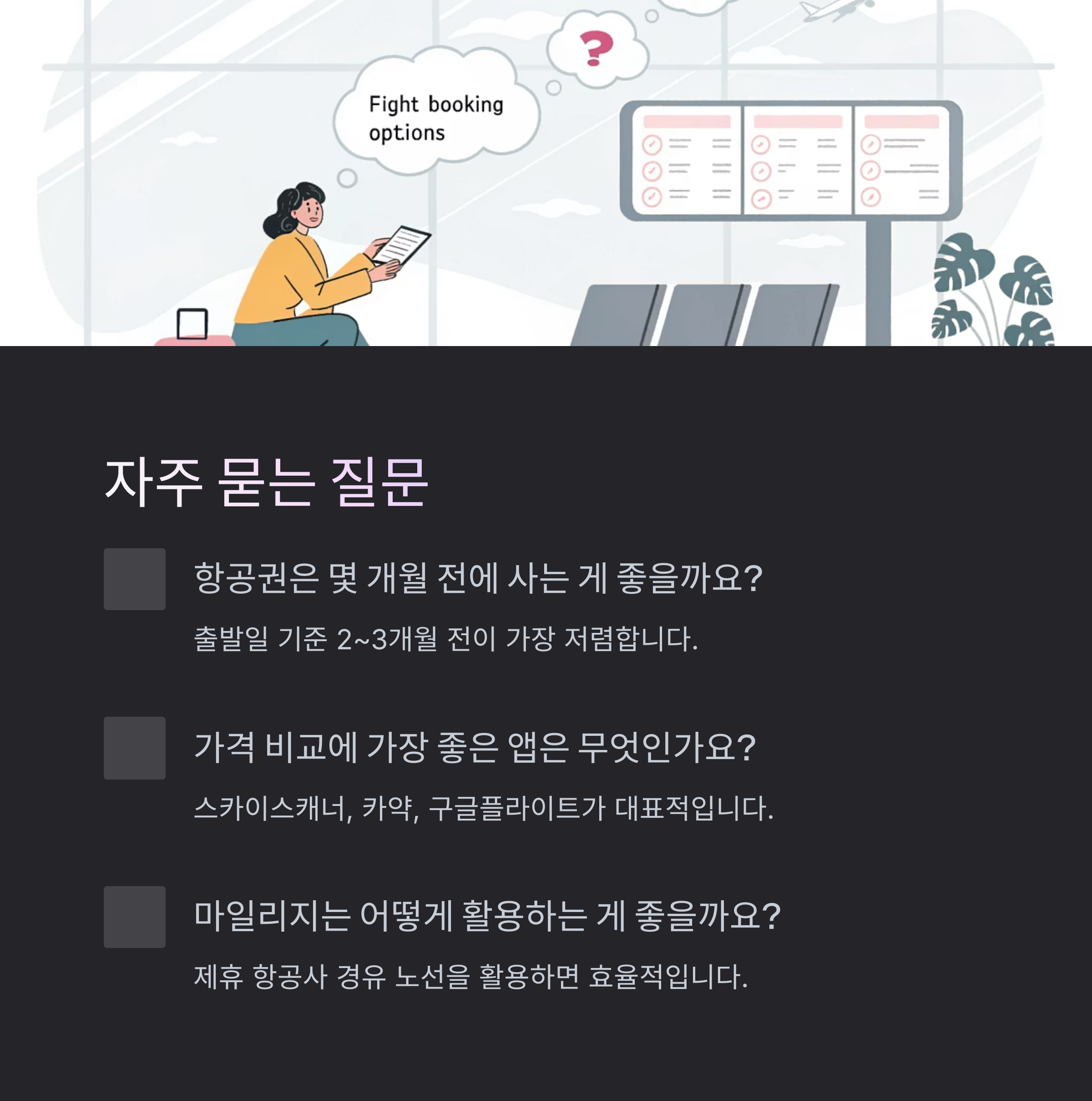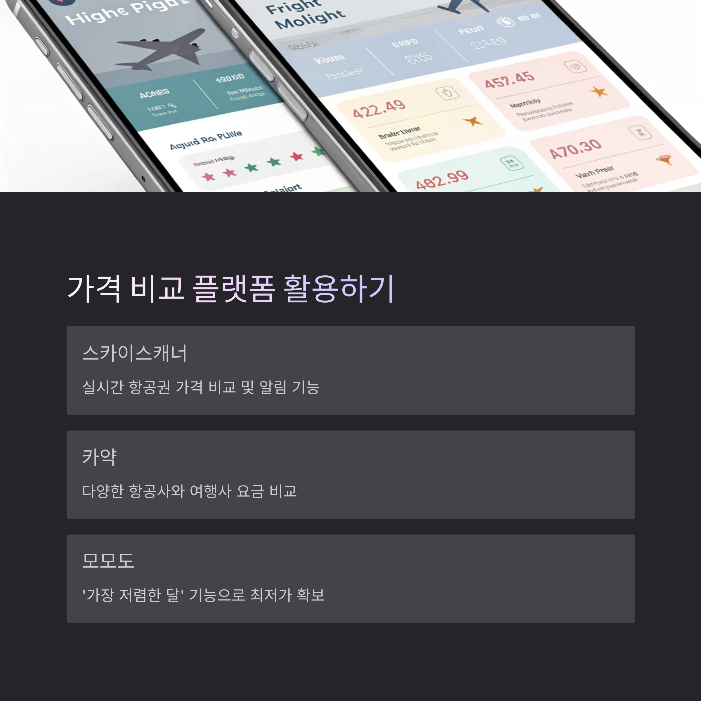 | 다양한 플랫폼으로 실시간 비교하세요. | 비수기, 평일, 새벽시간대를 공략하세요. | 카드 혜택 및 제휴사 경유로 활용도 증가. |