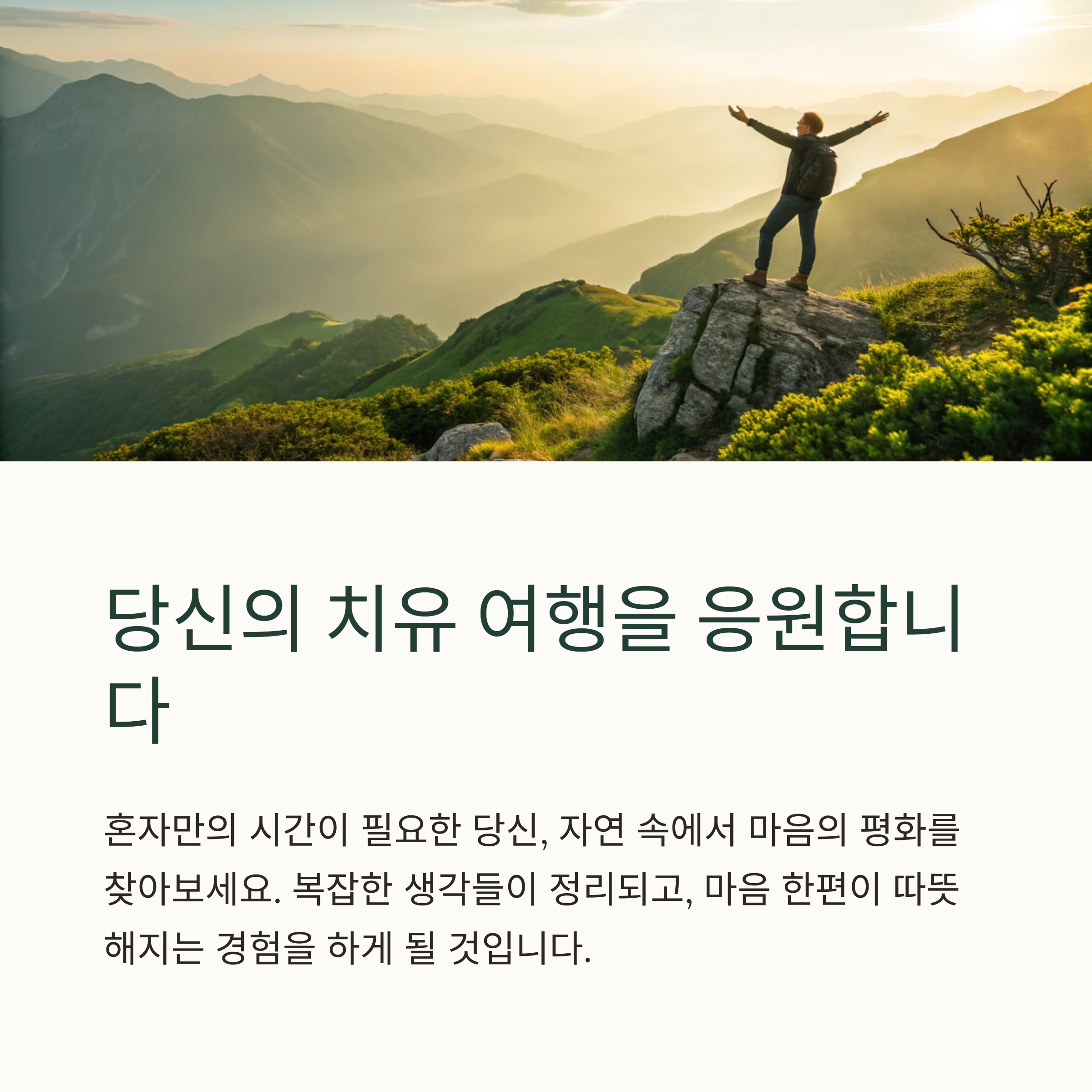 혼자만의 여행은 단순히 장소를 옮기는 행위가 아닙니다. 자신을 돌보고, 진정한 쉼을 얻는 시간입니다. 처음엔 두렵고 낯설 수 있지만, 한 걸음 내딛으면 전혀 새로운 세상이 기다리고 있습니다. 세상과 떨어져 내 안을 들여다보는 시간은 삶의 방향을 바꾸는 전환점이 될 수도 있습니다. 이번 여행이 여러분에게 그런 특별한 시간이 되기를 진심으로 바랍니다.