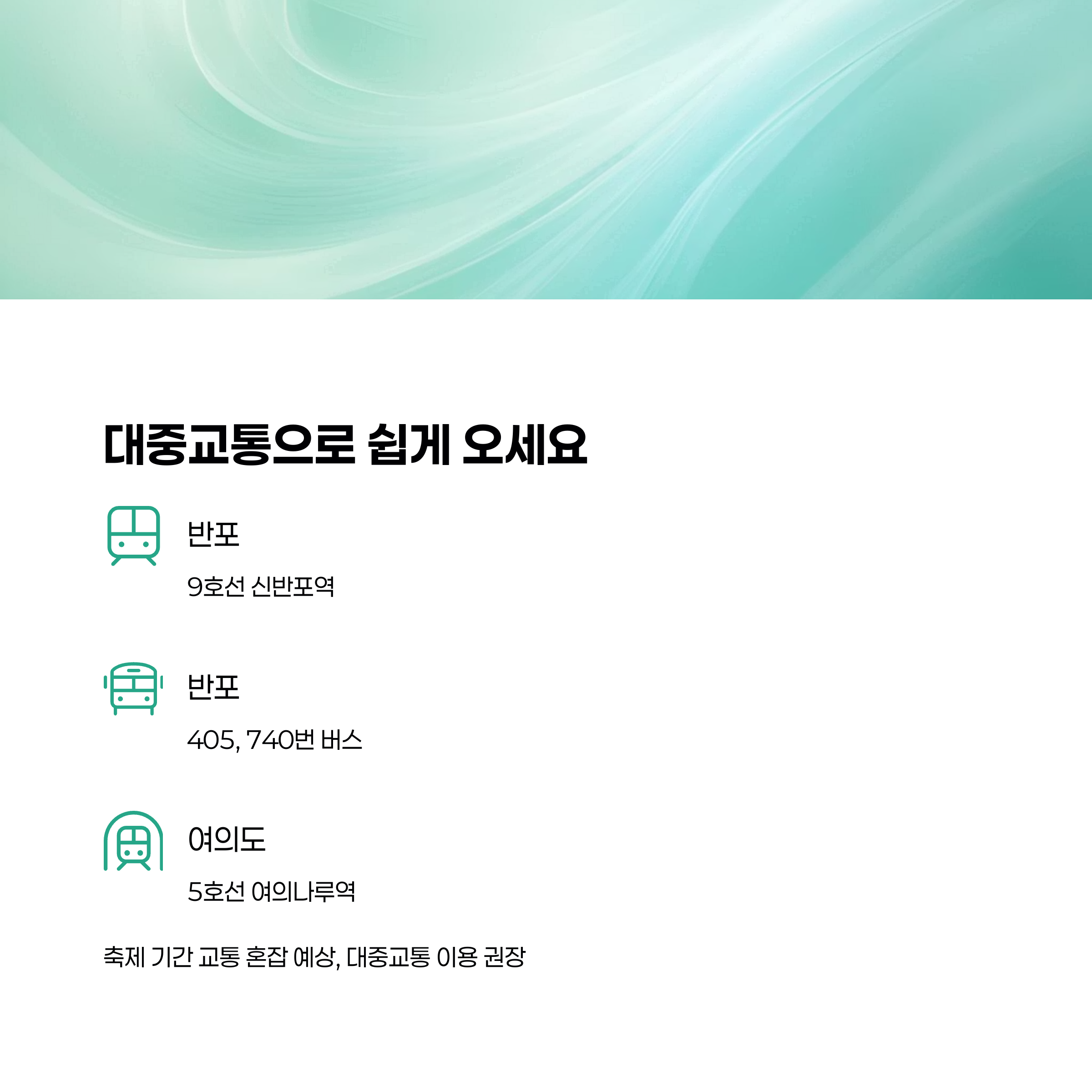 축제 기간 중 교통 혼잡이 예상되므로, 자가용보다는