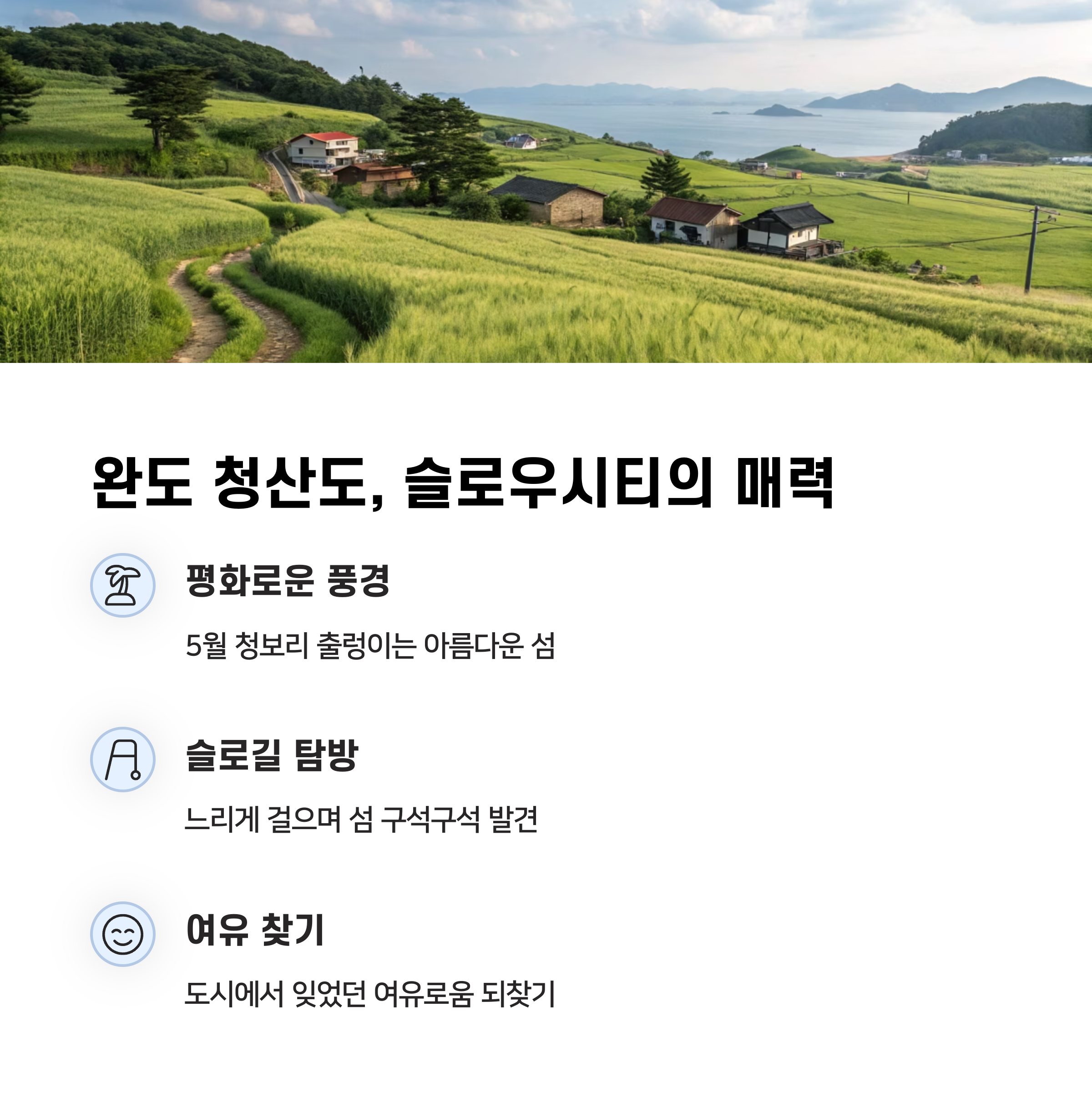 "슬로우시티"로 지정된 청산도는 평화로운 풍경으로 많은 이의 마음을 사로잡습니다.