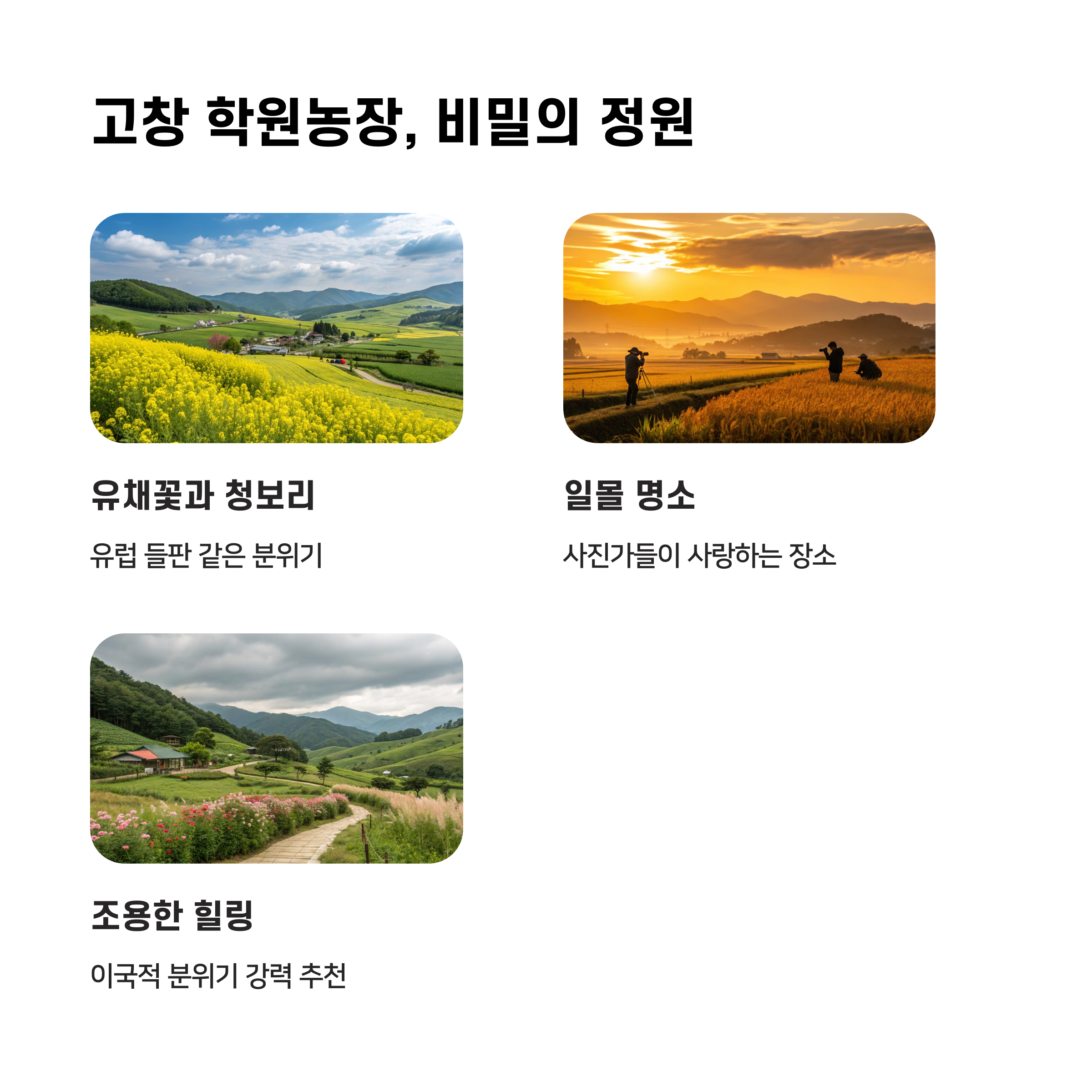 마치 유럽의 들판 같은 분위기를 연출합니다. 특히 일몰 시간대가 아름다워