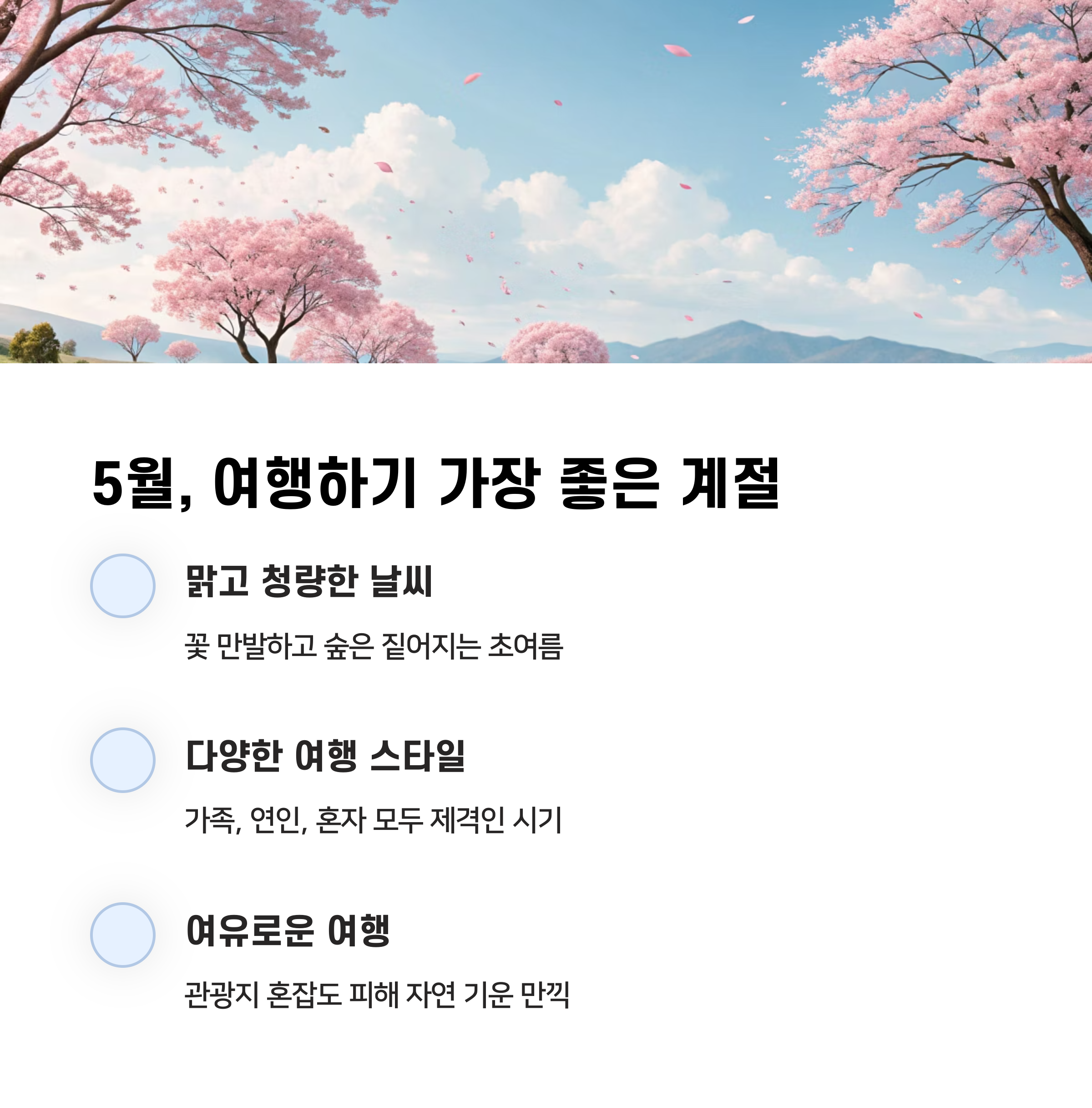 5월은 여행지마다 저마다의 색과 향기로 가득한 계절입니다.